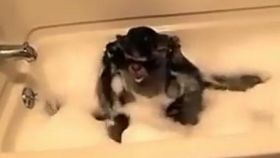 黑猩猩浴缸洗澡像個淘氣男孩萌翻天