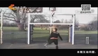 男子腳踢足球“投籃” 各種花樣百發百中