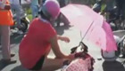 女子高溫天受傷倒地 路人撐傘救人