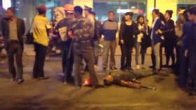 視頻畫面顯示,8月26日晚上8點09分34秒,市區東針路上,一位中年男子牽著一個小姑娘準備過馬路。