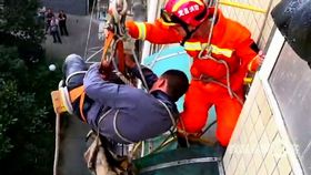 管道工被砸昏迷懸掛半空
