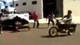 摩托男被汽車牽引鋼索勒斷脖子恐怖瞬間