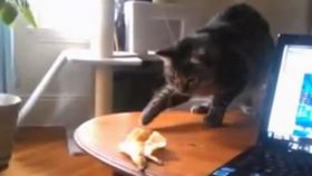 貓咪玩香蕉皮