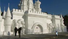 長春雪雕作品群迎春遭游人蹬踏拍照
