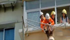 實拍:消防員抱住墜樓懸掛晾衣架女子瞬間