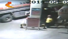 監(jiān)拍:油罐車撞倒加油機 汽油灑遍地