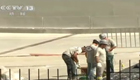 美女主持人直播球賽 被足球砸中腦袋