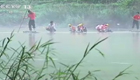實拍暴雨來襲 小學生乘竹筏上學