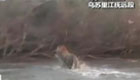 渡江野生老虎欲登漁船被東北大哥亂棍擊退