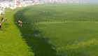 實拍青島近海滸苔泛濫 海面似茫茫草原