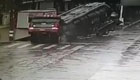路面塌陷大貨車攔腰陷入