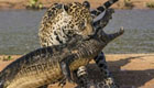 實拍獵豹跳進河里捕食鱷魚