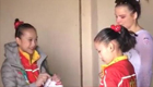 體操“小花”賽后與對手交流