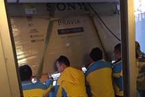 “土豪”購100寸電視 動用鋼索吊籃送上門