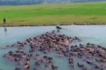 四川蓬安上演“百牛渡江”生態奇觀