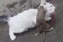 逆天老鼠死命咬住貓不松口