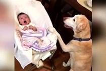 狗狗晃動搖籃哄寶寶入睡
