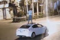 轎車迎面駛來駕駛室無人 司機竟站在車頂