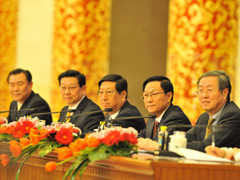 - 主持人李連寧:2010-3-6 10:04出席今天記者會并回答大家提問的嘉賓有:國家發展改革委員會張平主任、財政部謝旭人部長、商務部陳德銘部長和中國人民銀行周小川行長。他們將就加強和改善宏觀經濟調控來回答大家的提問。