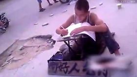 少年遭父逼迫烈日下寫字乞討