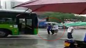 男子雨中以身擋公交挽留女友