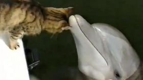 貓咪與海豚愛上了 大玩激吻