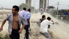 浙江海寧大潮沖塌護欄 近30名游客受傷