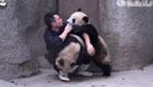 萌!實拍管理員給熊貓喂藥