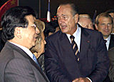 | 法國總統希拉克將率領包括300多企業家的龐大代表團于10月8日至12日對中國進行國事訪問并出席法國文化年開幕活動。根據日程安排,希拉克將訪問成都、北京、上海和香港。此次是希拉克作為總統第三次訪問中國。 |