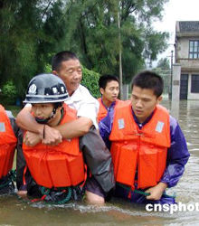 圖:武警解救臺風災區(qū)群眾