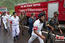 圖:巴基斯坦墜機(jī) 救援人員趕出事地點(diǎn)