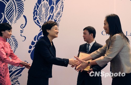 圖:李海峰蔣巨峰出席首屆世界華文教育大會