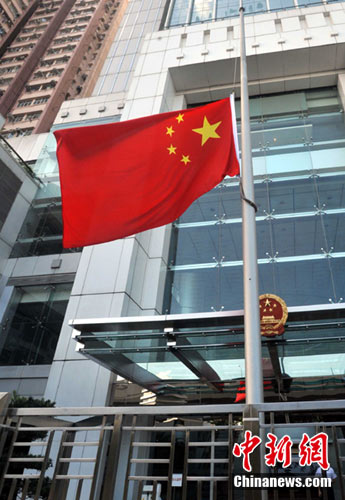 中央駐港機構國旗降半旗哀悼遇難香港同胞