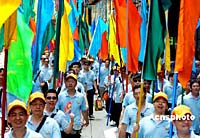 圖為音樂組合Boy`Z為大會演唱流行歌曲