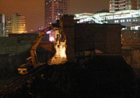 重慶“最牛釘子戶”戶主楊武4月2日下午走出“孤島”,接管“孤島”的開發商于當晚對這個釘了長達三年的“釘子戶”進行拆除。這段時間備受海內外關注的重慶“最牛釘子戶”拆遷事件終于以和解的方式拉下帷幕。位于重慶市九龍坡區繁華地帶一工地中的九龍坡區楊家坪鶴興路十七號房屋,因開發商和房主楊武、吳蘋夫婦未達成協議、僵持三年未拆遷,孤獨地聳立在被挖空的工地中,被中國網民和國內許多媒體稱為重慶“最牛釘子戶”。