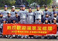 溫家寶在京都與日本大學生打棒球