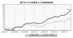 市場表現:自7月2日以來,航天軍工行業漲幅達21.15%,昨日航天軍工股表現可圈可點,漲幅位居第一位。據《證券日報》與WIND數據統計顯示,航天軍工類股有79只,其中,3只停牌的股票。7月2日以來個股表現良好,漲幅超過20%的股票就有33只,占總數的43%,超過10%的股票有65只,占總數的86%,在這期間,沒有下跌的股票,漲幅超過30%的股票有10只,包括成飛集成、博云新材、航天機電、航天長峰、中航重機、中國嘉陵、成發科技、晉西車軸、洪都航空、天興儀表等個股。