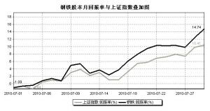 市場表現:自7月2日以來,鋼鐵行業漲幅達17.46%,尤其昨日鋼鐵股表現突出,漲幅位居第二位。據《證券日報》與WIND數據統計顯示,鋼鐵類股有33只。7月2日以來個股表現良好,漲幅超過20%的股票就有16只,占總數的48%,超過10%的股票有31只,占總數的94%,在這期間,沒有下跌的股票,漲幅超過30%的股票有5只,其中,超過30%的股票有方大特鋼和三鋼閩光,方大特鋼漲幅達52.58%,三鋼閩光漲幅達30.54%。