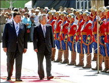 日本首相小泉純一郎8月10日上午乘專機出發,直飛蒙古國首都烏蘭巴托,展開了他為期兩天的蒙古之行。分析人士認為,這次小泉謝幕之行出訪蒙古以金錢鋪路,重點看重蒙古豐富地下資源。日本外務省發言人表示,在訪問期間小泉將向蒙古許諾提供6億日元(約合520萬美元)援助....<全文>