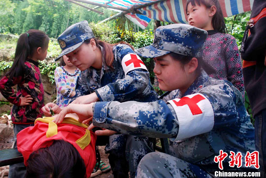 為駐地民眾處理傷情。易開紅 攝