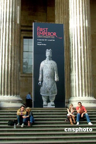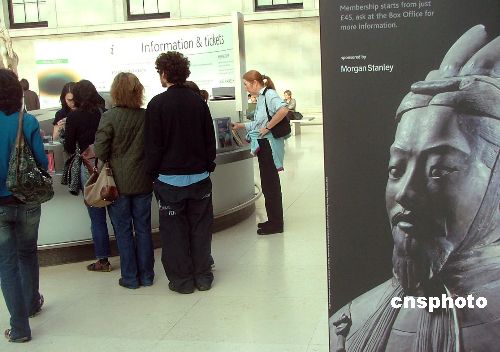 從即日起至2008年4月6日止,倫敦大英帝國博物館內展出從西安新出土的兵馬俑歌妓、紅馬等上百件文物。英國華人廚師還在展館現場示范中國點心蒸肉包子,倫敦刮起“中國熱”。中新社發 盧威 攝