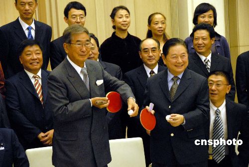 10月26日下午,東京都知事石原慎太郎在東京市政大廈會見正在日本訪問的中國乒協主席徐寅生及其訪日團一行20人。徐寅生一行應日本乒協的邀請10月25日抵達東京開始對日本進行一周訪問,代表團成員包括莊則棟、曹燕華等10多名國手。石原慎太郎說,在日中邦交正常化35周年之際,在東京見到中國的著名乒乓選手非常榮幸。石原希望中國支持東京申辦2016年夏季奧運會,通過體育交流促進中日關系。中新社發 段躍中 攝