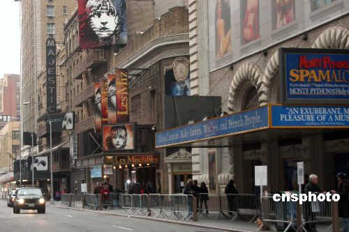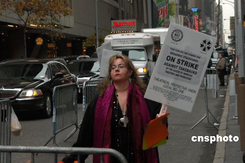 當(dāng)?shù)貢r(shí)間十一月十二日的紐約百老匯街在罷工中榮景不再、一片蕭條。紐約舞臺(tái)工作人員工會(huì)與舞臺(tái)劇制作人聯(lián)盟之間的談判至周一仍然處于僵持狀態(tài),舞臺(tái)工作人員繼續(xù)罷工,目前罷工抗議活動(dòng)已經(jīng)進(jìn)入第三天,這使百老匯包括《獅子王》、《歌劇魅影》等在內(nèi)的27個(gè)舞臺(tái)劇被迫停演。罷工導(dǎo)致每日損失在一千七百萬(wàn)美元以上。中新社發(fā) 劉小青 攝