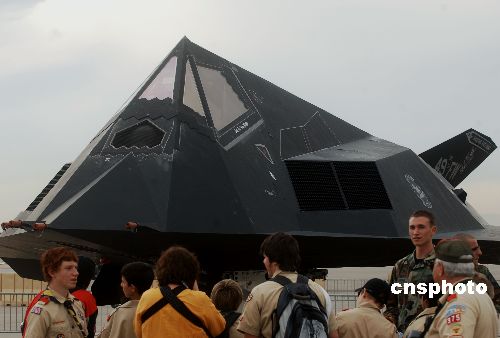 美國為紀念六十年前成立空軍,十一月在內華達州的內利斯空軍基地舉辦大規模飛機展示,民眾前來觀看世界上第一種可正式作戰的隱身戰斗機F-117A“夜鷹”,它專門用于夜間攻擊。中新社發 賈國榮 攝