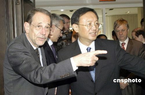 當(dāng)?shù)貢r間11月26日,中國外交部長楊潔篪(右)在美國首都華盛頓會見了前來參加中東和會的歐盟理事會秘書長兼歐盟負責(zé)外交和安全政策的高級代表索拉納。中新社發(fā) 邱江波 攝