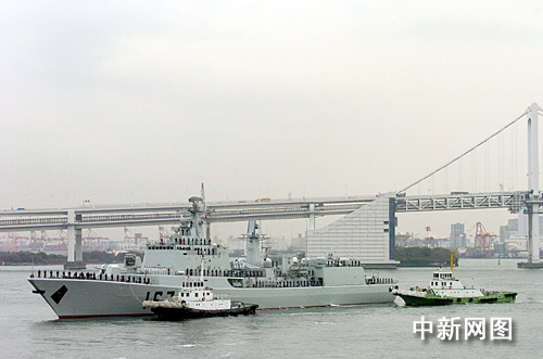 28日當?shù)貢r間上午十點,中國“深圳”號導彈驅(qū)逐艦順利抵達東京晴海碼頭,開始對日本為期四天的正式友好訪問。圖為“深圳”號在日本海上自衛(wèi)隊護衛(wèi)艦的護衛(wèi)下駛進晴海碼頭。作者:朱沿華