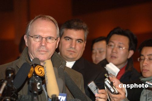 十二月五日,美國助理國務卿希爾結束對朝鮮的訪問抵達北京,在其下榻的酒店接受記者采訪。中新社發 廖攀 攝