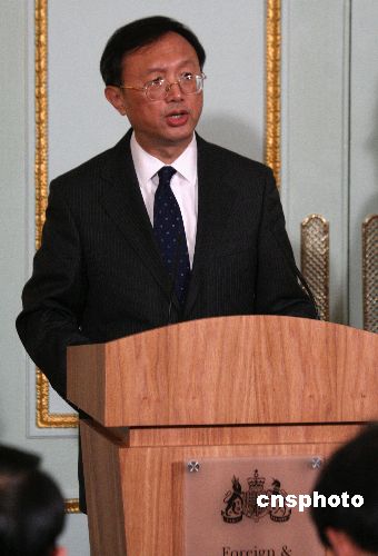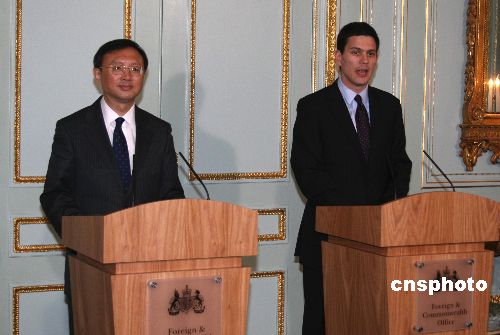 當?shù)貢r間十二月五日下午,英國外交大臣米利班德在其倫敦官邸會晤來訪的中國外長楊潔篪。這是楊潔篪就任外長后首次正式訪問歐洲和英國。圖為在雙方會談后共同會見記者時,楊潔篪回答提問。中新社發(fā) 李鵬 攝