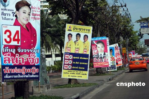 進入十二月的泰國,大選的氣氛和天氣一樣熾熱。大街小巷路邊,琳瑯滿目的候選人的廣告牌,與高音播放著競選者政策的宣傳車,成了泰國十二月街頭一道獨特的風景線。將于本月二十三日舉行的泰國新一屆國會下議院選舉引人注目。目前各參選政黨均在做最后的競選沖刺。中新社發 顧時宏 攝