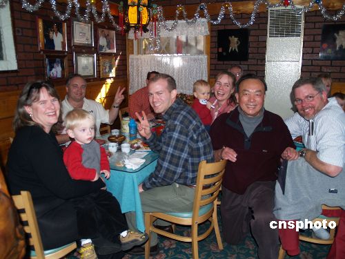 12月30日,不少美國人聚集在洛杉磯海拔6000英呎山上小鎮“愛德沃德”唯一的中餐館“又一村”進行“小年夜派對”,品嘗地道的中國餐,迎接新年。店主葉志锜開店已20年,他是美國上海人聯誼會首屆榮譽會長。中新社發 盧威 攝